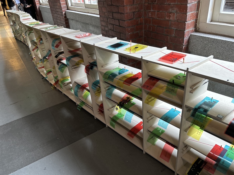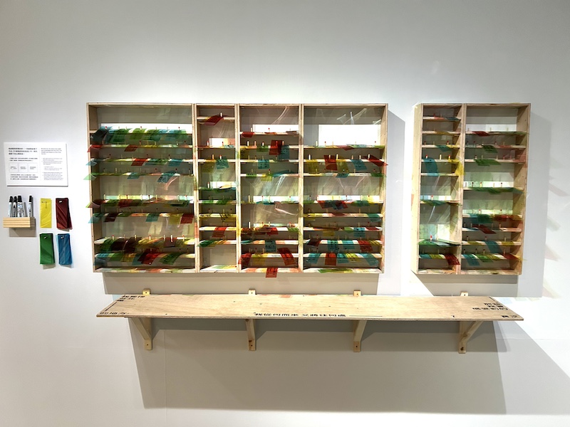 例如,作品《什麼風把你吹來的》蒐集多位貧窮經驗者的台北印象,並將他們的想法,陳列在象徵時代縫隙的木製展架上。每張長條透卡可窺見擠簇在台北討生活的人們,大聲呼喚著內心感悟,包含辛苦、厭惡,或仍飽含希望與轉機的心情。而展區中的留言牆也以相同設計,邀請觀眾留下對台北印象的「心聲碎語」。