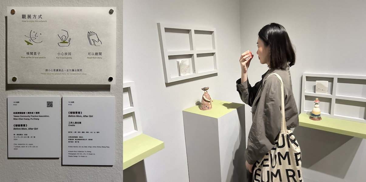 展覽尾聲,展示學員/經驗者平日在單位所累積的創作,也是他們回應生活、療癒、認識自己的過程。如作品《郁郁青青》邀請脆弱家庭母親,在創作中暫時卸下母職,透過陶偶及調香製作的過程,整理思緒、傾聽自己的需求。