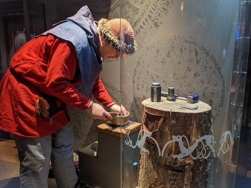 此外,展場內的服務人員也身兼數職,除了引導觀眾、觀察展場內情況,也會向觀眾介紹展品細節,或演示如何製作錢幣等,提供觀眾與維京文化最「直接」的接觸。