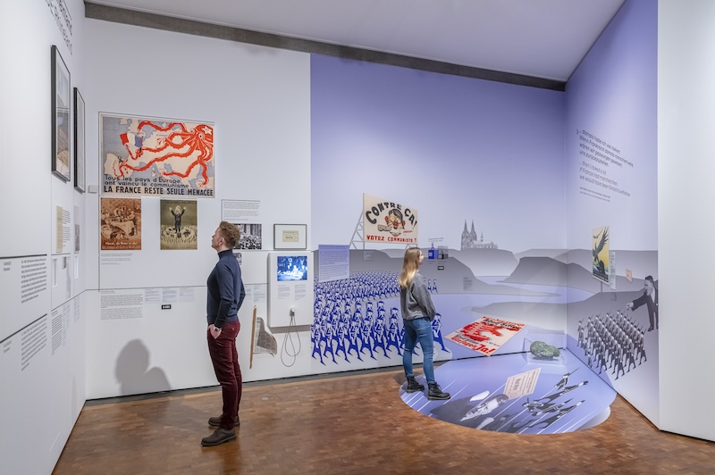 順著展覽動線,時間再倒轉數十年,展區中呈現了德國和韓國的政治分裂。1950年,北韓攻擊南韓,引發了韓戰;而在1948/49年的關鍵時期,東德與西德的對峙並未發展成軍事衝突,而是形成了冷戰。通過這些事件,展覽比較了東西方國家在相似時期作出的不同選擇。