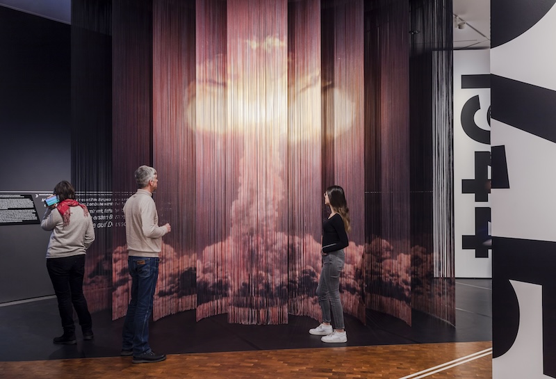 展覽中討論原子彈投放的裝置藝術作品,帶領觀眾思考:若二戰時德國戰事延宕未止,或許盟軍會將這個毀滅性武器投放於德國,而非日本。(© David von Becker, 德國歷史博物館)