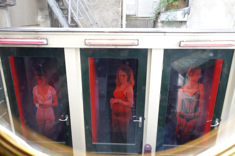 當觀眾走進博物館,上樓梯、通過房間與櫥窗時,猶如體驗買春客走過的路徑,人性凝視與窺淫的本能在空間中展露無疑,忍不住在路經各扇小窗戶時窺看鄰近建築的櫥窗,殊不知窗外女性挑逗的身影,正是博物館刻意投放給觀眾的錄像。