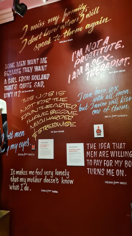 館方以聳動的展示主題,吸引國際觀光客的目光,並善用自身空間的特性,使觀眾逐步理解性工作者的工作日常。這棟建築的前身為提供性服務的所在,博物館使用其中三層樓作為開放空間,保留屋內原有的狹長廊道與內部裝潢,包含性行業仲介者的辦公桌、性工作者工作室及攬客用的紅燈櫥窗等等。