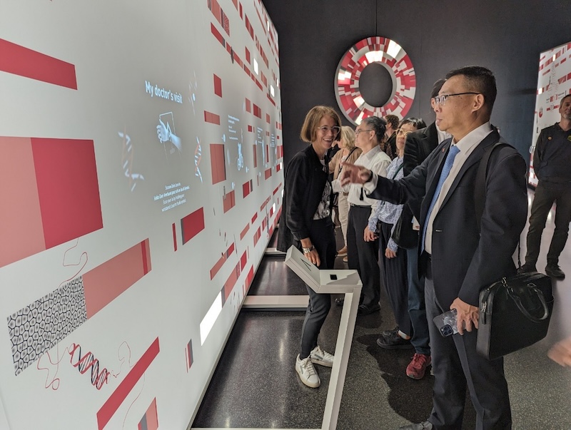 而展覽又如何連結科技、創造互動呢?進入展區前,可在該館的Pepper機器人身旁取得參觀柏林未來館必備的RFID互動手環。該手環扮演著與展覽互動的重要橋樑。