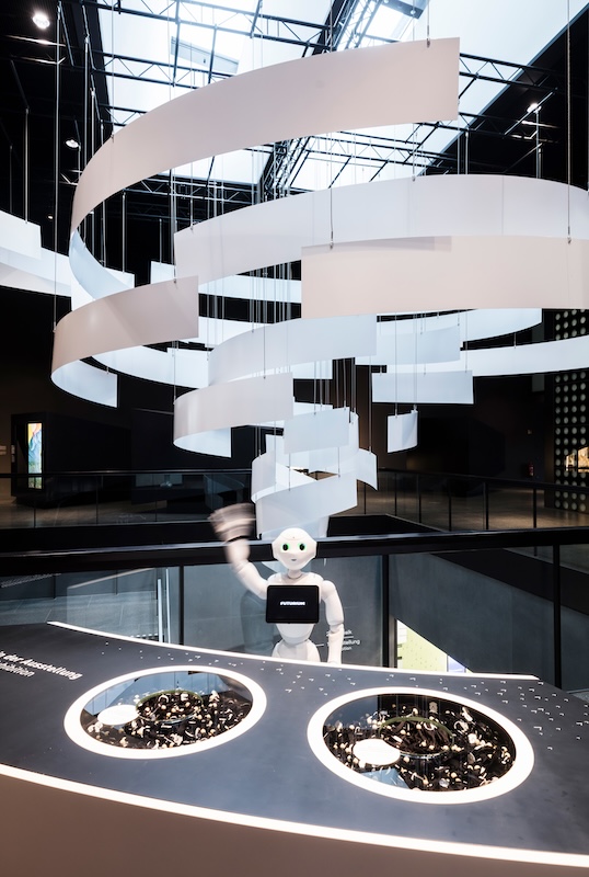 而展覽又如何連結科技、創造互動呢?進入展區前,可在該館的Pepper機器人身旁取得參觀柏林未來館必備的RFID互動手環。該手環扮演著與展覽互動的重要橋樑。