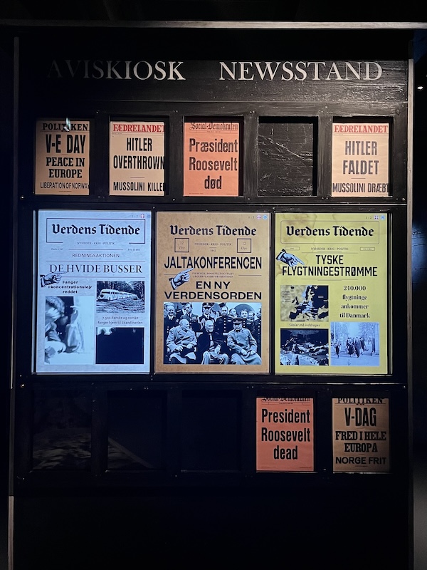 常設展依照時間軸劃分展區,主要記錄1940至1945年,丹麥在納粹佔領期間所經歷的困難與挑戰。【註釋1】在展示手法上,館方採用沉浸式的空間設計,結合動畫投影與場景再現,如隨處可見張貼於展牆的海報、散落的傳單,耳邊不時傳來行軍踏步聲和警報聲,營造出身臨其境的緊張氛圍。
