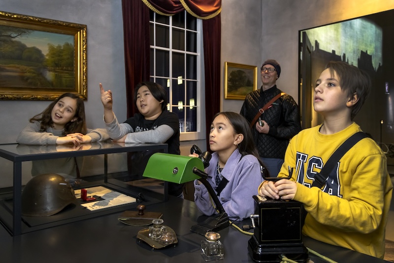 而情報監聽裝置,則讓觀眾扮演加入抵抗組織諜報部門的密碼破譯員,使用時需邊拿起話筒監聽,邊分析、辨認納粹使用的Enigma密碼機傳出的代號,協助將內容回報給盟軍,並從中理解當時的戰情交換、物資空投地點等資訊。