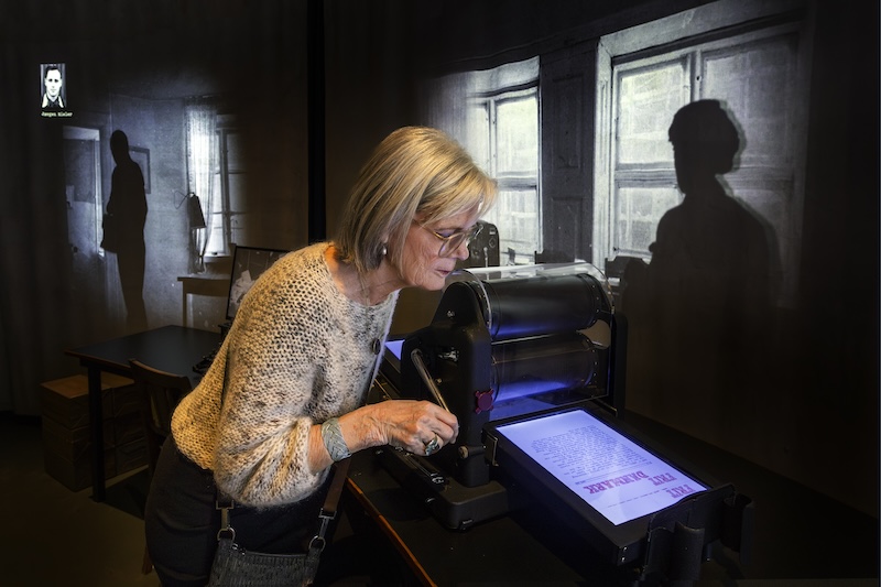 館內設置許多互動裝置,使觀眾可以體驗二戰期間抵抗組織的各類行動,圖為製作反抗納粹地下雜誌裝置。(丹麥抵抗博物館 提供)
