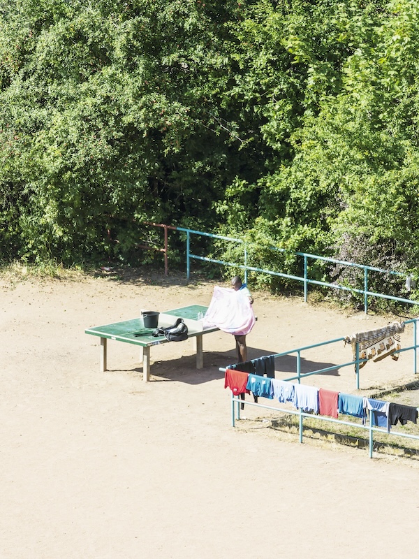 展覽首先由富安隼久(Hayahisa Tomiyasu)的鏡頭向觀眾發出提問:運動,在日常生活中擔任何種角色?其攝影作品《TTP》以一張置於戶外的桌球桌為焦點,紀錄人們各種使用方式,帶領觀眾想像運動場域的多元可能。這張桌球桌不再局限於其原有功能,也可能成為家庭聚餐的空間、曬衣架或孩童的遊樂場,呈現運動融入人們日常的生活百態。