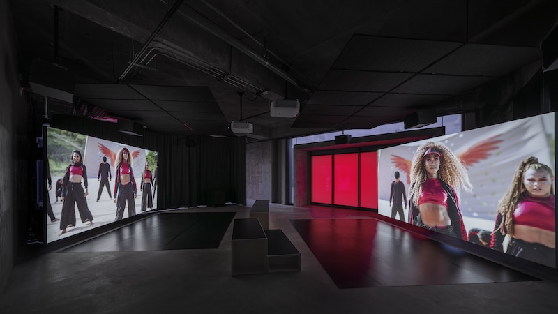 穿梭到下個展間,芭芭拉.瓦格納與班傑明.德.布爾卡(Bárbara Wagner & Benjamin de Burca)的錄像作品《SWINGUERRA》,透過舞蹈律動,揭示巴西社會對多元性別族群的不平等待遇。