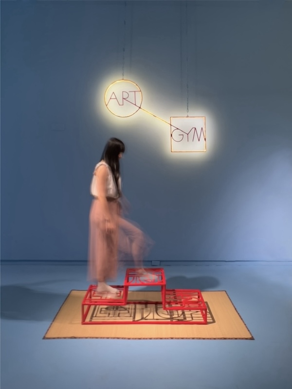 「藝術健身房」特展,作品發想自健身器材,使觀眾可在其中伸展筋骨與作品互動。(蕭壠文化園區 提供)