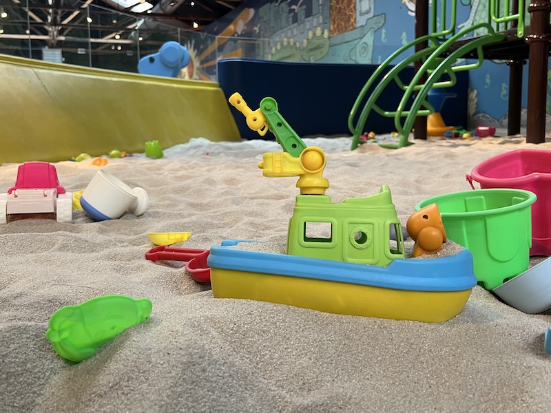 遊戲室提供軟抱枕、木馬、學習圖版等觸摸教具,也設置許多以數字、線條、圖形、角色模擬等設計的設施,如迷你廚房、舞臺空間,使孩童可透過道具裝扮、遊戲與多元感官探索,激發想像力與創造力。