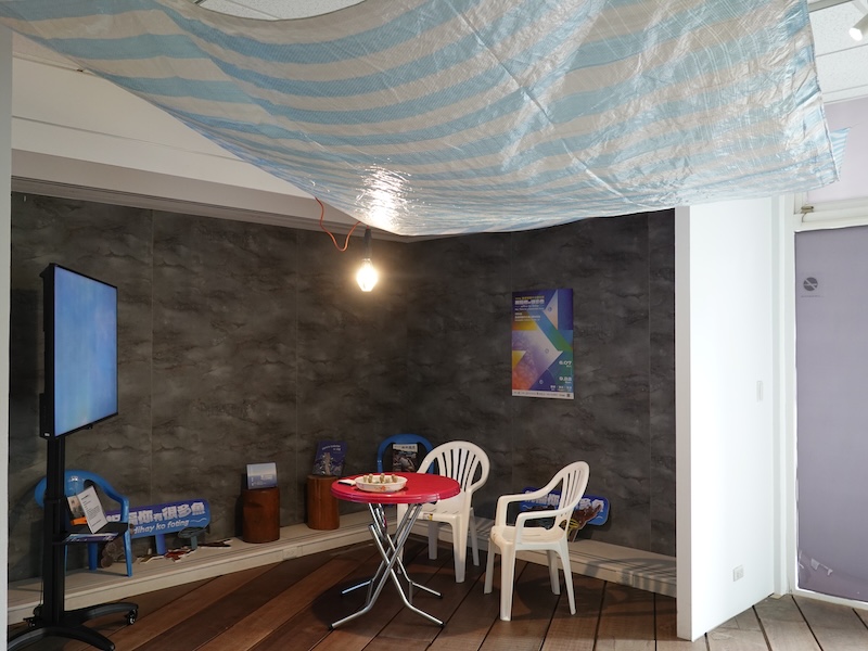 「我家前面是海洋」展區透過族人的作品,連結港口部落的傳統文化,以及對海洋資源的態度與反思。影像作品《阿美族的燜燒鍋》是當地Cepo’藝術中心【註釋1】舉辦兒童動畫營的系列成果之一。部落兒童在引導之下,自主完成了田野調查、腳本發想、動畫偶與場景的製作、動畫的拍攝與配音。從傾聽、實踐到轉化,以孩子們的視角保存了部落耆老的智慧。