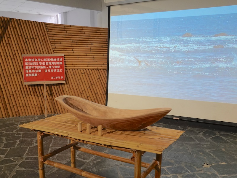 此外,展覽也可見部落如何以祭儀傳承對生態保育的思考。如Apo’陳昭興與王亭婷《海是要祭續Misacepo’》以空無漁獲的海祭祭台為核心,象徵遭受破壞的海洋生態與失傳的部落傳統。作品從港口部落的重要祭儀——「海祭」(Milaedis)出發,呈現青年階級向耆老學習傳統漁法和製作漁具,同時從過程中理解、傳承與自然共生的精神,引導觀眾反思文化可能隨環境變化而消逝的未來。