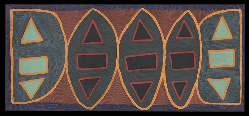 來自蓬普拉歐藝術文化中心,Christine Holroyd、Elliot Koonutta、Syd Bruce Shortjoe 和Romena Rose Edwards作品《保護我們的海洋II》(Protecting Our Ocean II)。(圖片提供:The National Museum of Australia)