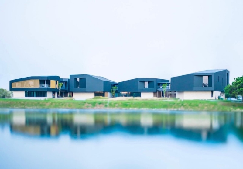橫山書法藝術館於2021年開館,是全臺第一座以書法藝術為主題的公立美術館。座落於桃園青埔的埤塘旁,書藝館的建築融合在地原生地景,將埤塘比做磨硯之水;而建築靈感源自於書法篆刻的山形硯石,硯台與墨池相互輝映,有著書藝館與埤塘共存之意。