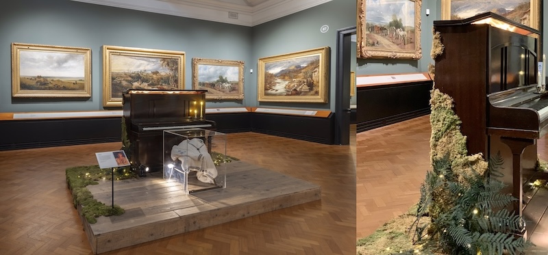 而第9站「Chapter folklore」則還原歌曲《folklore》音樂錄影帶中的最後一幕,將羊毛衫陳列於鋼琴椅上,彷彿泰勒絲剛離開,而鋼琴上的苔蘚則隨著展期時間流逝逐漸枯黃,宛如展廳內透納與康斯坦伯風景繪畫中的一角。