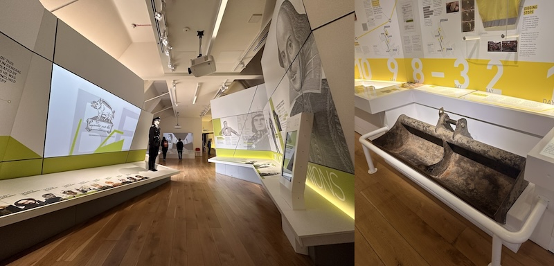 展區中也可見考古挖掘器具,如挖到遺骸的挖土機鏟子,並以圖表、文字和影像紀錄重現考古現場;此外,策展團隊也特別安排電腦斷層掃描儀(CT)和3D列印遺骸骨架,以當代科技重現國王生前模樣。