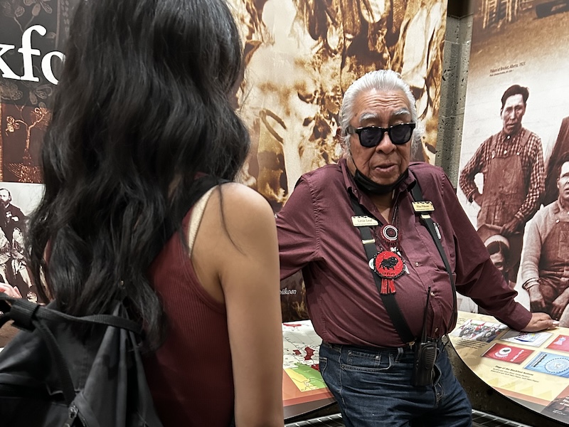 館內黑腳族解說員小葉子(Little Leaf)的熱情導覽,使觀眾能夠在導覽互動中親近族人的生活哲學。當觀眾問及黑腳族如何面對歷史傷痛並與當代社會共存時,小葉子向年輕人分享關照自然、放下焦慮的智慧:「用心傾聽上天的安排,從容地看日出,聆聽鳥鳴,無需過度焦慮。」他進一步說明:人們應該走向大自然的懷抱,平等對待各族裔。