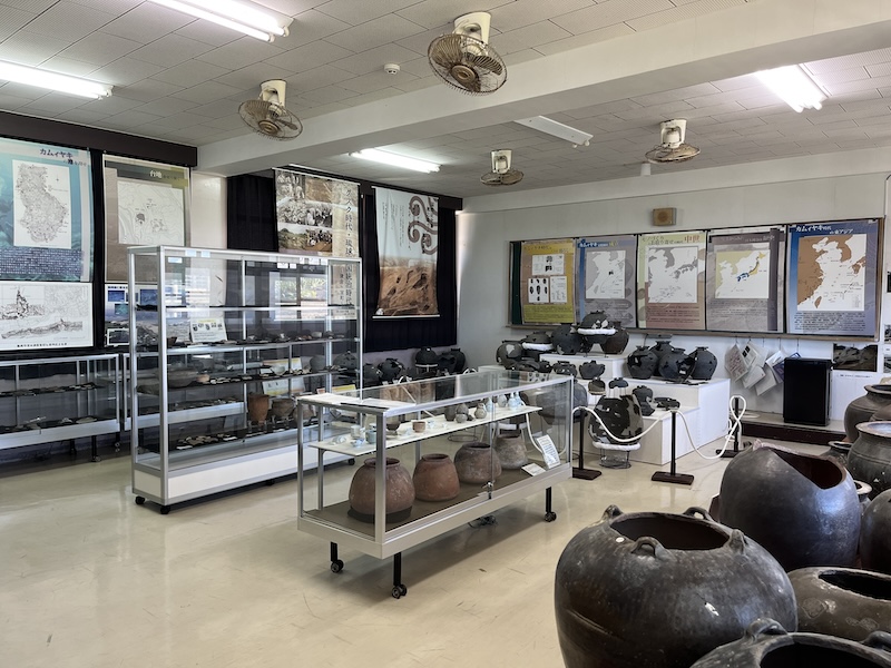 由高中舊校舍改建的伊仙町歷史民俗資料館,則將影像裝置與常設展並陳,連結具體物件,嘗試喚起居民過往的生活記憶。一樓展廳可見明治時期到昭和時期的生活器具,二樓則展示當地自然生態,包含特有種奄美短耳兔標本與「德之島神屋燒陶器窯遺址」等。館內也特別展示來自九州、奄美、沖繩及中國等地的食器,讓觀眾透過對比加深對當地文化交流的認識。