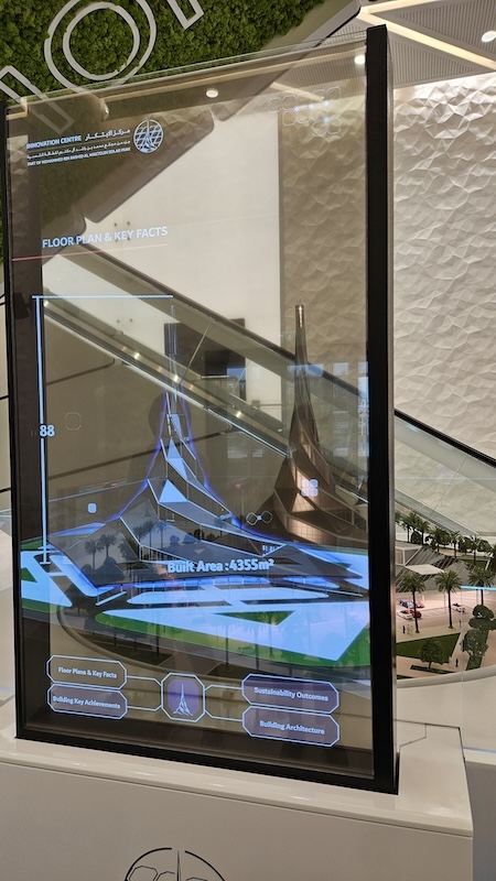DEWA中心一樓主要聚焦於杜拜從傳統能源到現代綠色科技的轉型過程。展廳內詳細展示了太陽能、氫能及智慧監控系統如何協同運作,形成綜合性的能源方案,以支持杜拜實現淨零排放的宏大目標。