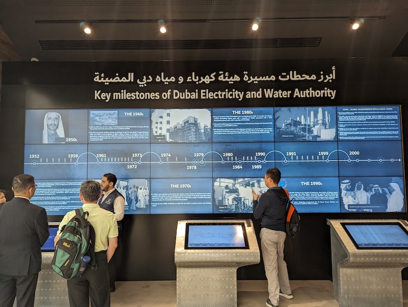 展廳中可見館方透過時間軸呈現自1950年代能源發展至今能的重要里程碑【註釋3】。觀眾可透過設置於前方的多媒體裝置,以視覺化的方式認識杜拜各區域電力和水務系統的發展進程。