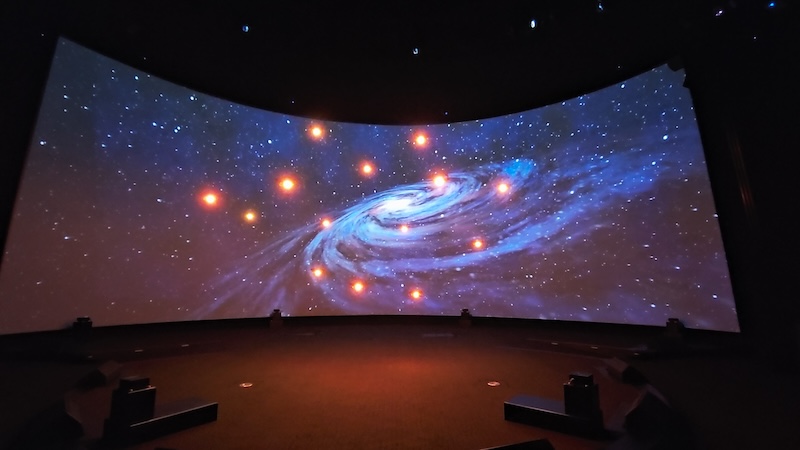 此外,該館結合全息投影與無人機表演的展演也提供給觀眾獨特的博物館體驗。放映室中以全息投影技術(Hologram) 播映影片,內容跨越時空:從恆星能源的誕生講述到杜拜未來發展的願景。影片尾聲,一支無人機隊突然從地板開口飛起,以自動變換的優雅隊形環繞投影幕前方的空間。無人機隊形配合螢幕中的銀河系,如同點點星光,這場精彩的無人機表演持續數分鐘,展現了DEWA創新中心充分運用先進科技帶給觀眾新鮮體驗。