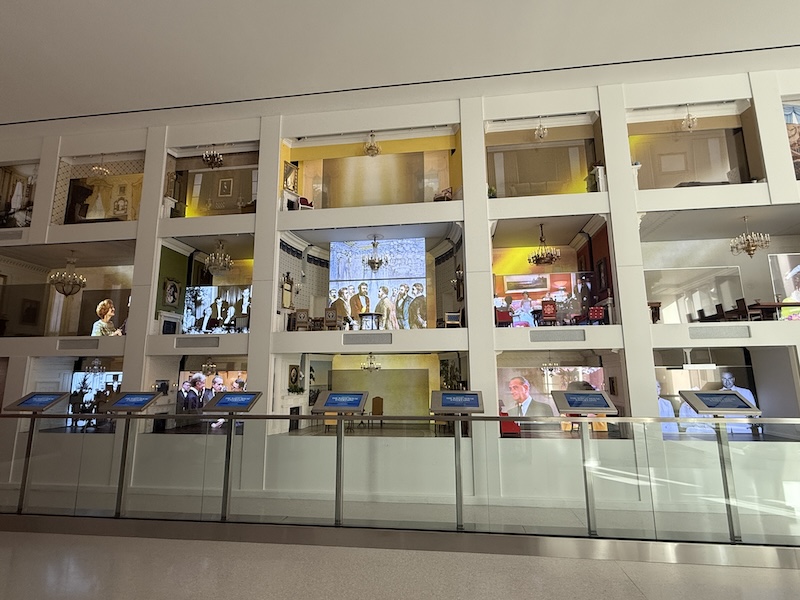 館方在設計上強調身歷其境的體驗。如白宮房間裝置呈現內部系列空間,搭配動畫展示每個重要的歷史瞬間,並以投影呈現當時人們的活動。其中, 1814年白宮大火的場景,觀眾可見窗戶上火焰升起,感受當時的緊張情境。