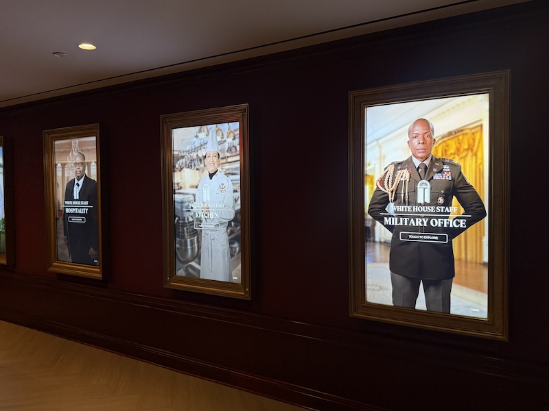 「人民之家」不僅展示權力的象徵,也揭示鮮為人知的白宮員工故事。例如,「人民之聲畫廊」展區(People’s Voices Gallery),觀眾可與白宮工作人員的數位肖像進行互動,認識這群協助白宮日常運行的歷史見證者,包含協助空間佈置的策展人或白宮首位女性廚師等。