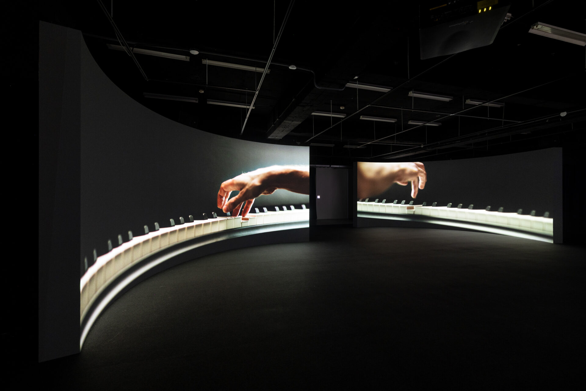 展覽尾聲由米尼亞・碧亞比亞尼的《在夜裡的無盡凝視》作結,作品以破碎影像與斷裂聲響,回應瓜地洛普的殖民歷史。畫面中出現「海洋有祖先的味道」等文字,疊合多重層次的歷史創傷與集體記憶——海洋既是奴隸貿易的航道,亦為孕育新生的搖籃,同時承載著創傷與重生並存的複雜記憶。觀眾在凝視與傾聽之中,得以感受到語言如何在歷史與感官之間流動。