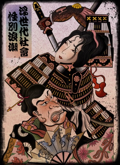 在創作實踐中,學生將觀察到的現象轉化為版畫圖像。例如,有人以穿著和服的男性挑戰性別刻板印象,有人透過短髮與服飾選擇展現女性多元氣質,強調打扮是自我取悅而非迎合大眾;也有人以浮世繪風格重新詮釋家庭分工,表達父母皆可成為家庭的MVP。其他作品則透過衣飾交錯象徵剛柔並濟,或以女武士展現溫柔與堅毅的平衡;甚至借用小丑魚行為顛覆「男主外、女主內」的傳統觀念。這些作品皆從不同角度描繪出年輕世代對性別平權的多元想像。