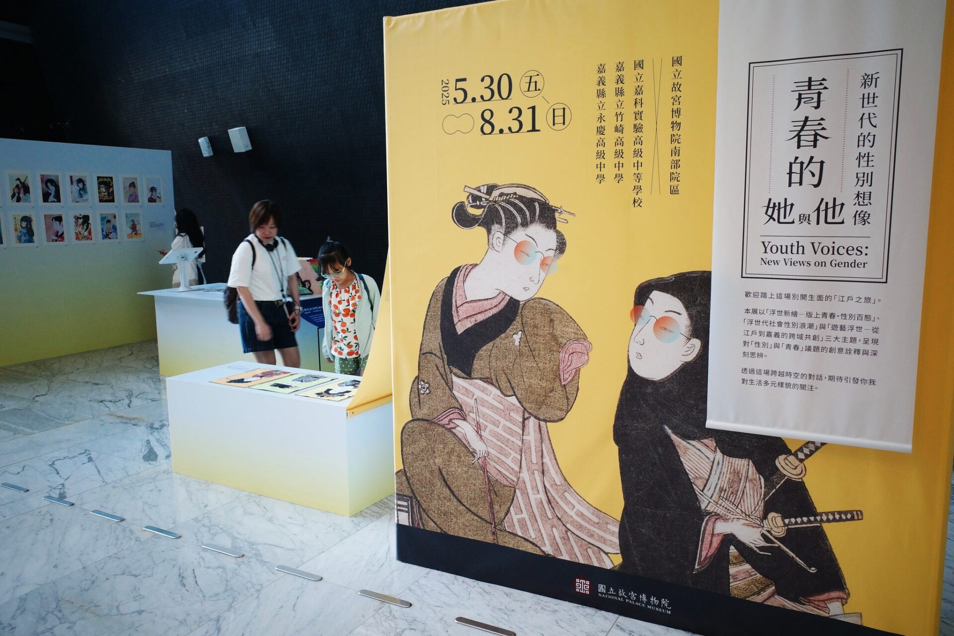 故宮南院於2025年5月推出《青春的她與他》特展(展期至2025年8月31日),展覽以特展「江戶浮世之美」為基礎,攜手嘉義地區國小、高中學生參與合作,並共同策劃三個主題展區:「浮世新繪:版上青春.性別百態」、「浮世代社會性別浪潮」與「遊藝浮世:從江戶到嘉義的跨域共創」。透過學生以「浮世繪」發想的藝術作品,呈現新世代對性別的多元想像與創意詮釋。觀眾不僅能欣賞學生作品,更可透過參與,感受展覽作為學習與創作交流平台的多重意義。