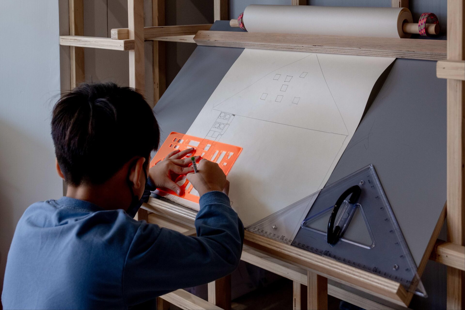 特展以5大主題動線,帶領觀眾展開一場「由外而內」穿越建築的冒險。展場入口設置「建築工作室繪畫區」,邀請觀眾化身建築師,透過草圖紙和特製尺規繪製平面設計圖;接著再移步至「立體積木區」建立建築基地,從平面延伸到立體,逐步完成屬於自己的建築構想。這一過程兼具趣味與挑戰,也成為展覽中深受觀眾喜愛的體驗之一。