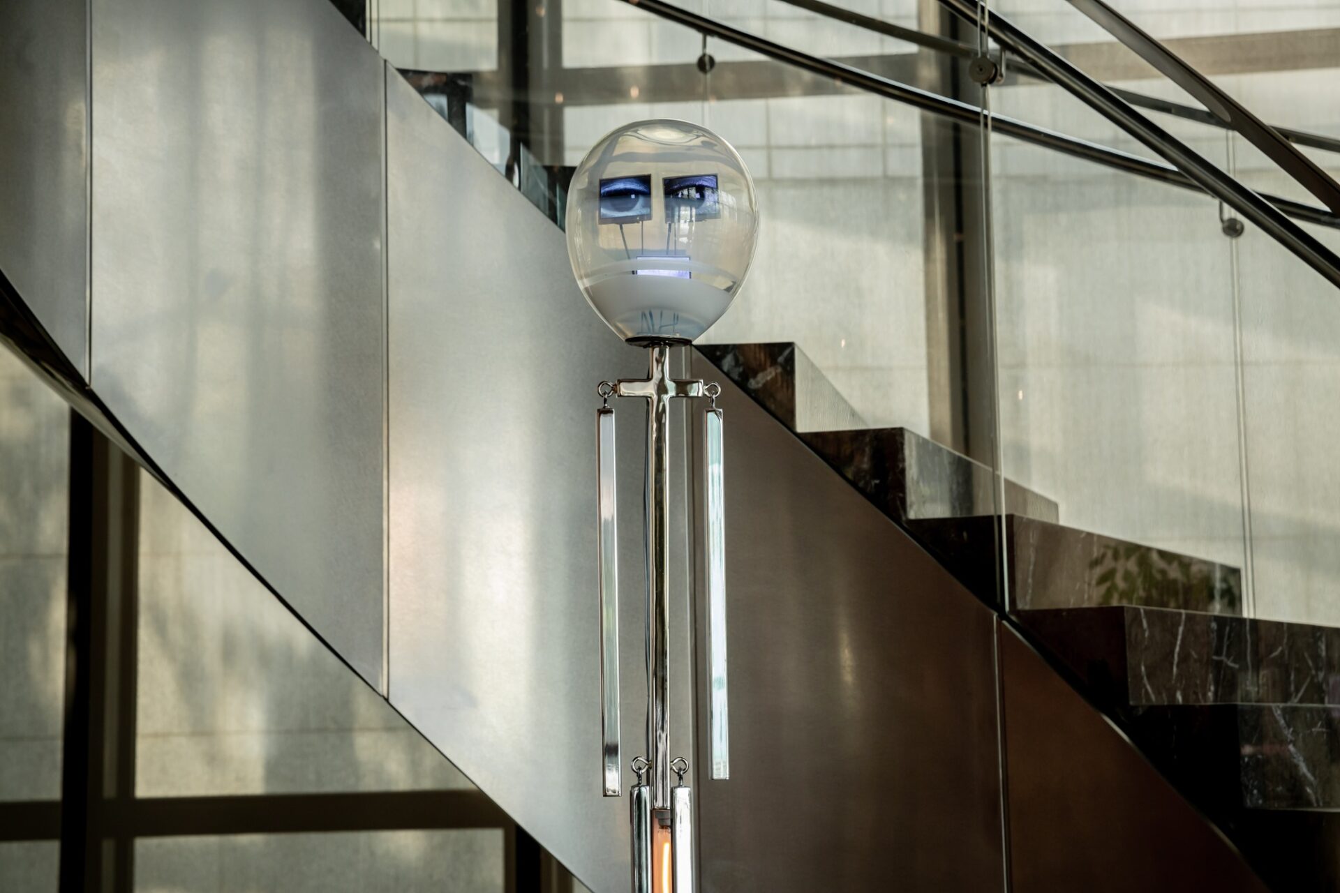 台新金控大樓展覽《湯尼.奧斯勒:水的記憶》,延續關注臉部辨識、演算法與人工智慧對身份、人的存在狀態與社會文化之影響等議題,結合了玻璃、水和電腦運算的多媒體影像雕塑裝置,如同具有生命彼此對話交談的魔幻奇石,表達與討論「水」這無處不在的物質如何作為我們信仰體系的載體。同時,台新總部大樓外也特別打造了以奧斯勒的經典作品作為靈感的大型窗貼佈置,透過明亮有趣的設計,呈現奧斯勒作品與仁愛圓環鄰里、市民朋友之間的幽默對視,為台北東區增添活潑歡欣的氣氛,傳遞湯尼.奧斯勒獨特的藝術語言。