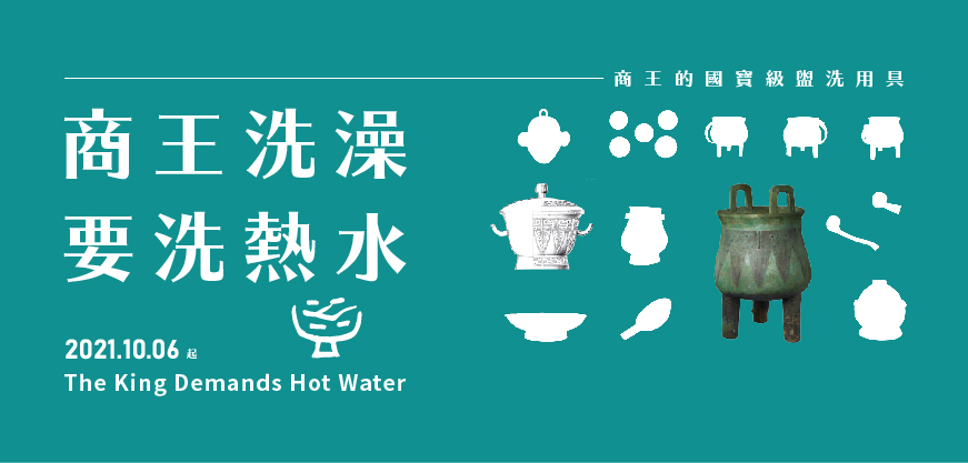 本展覽有兩個主題:「商王的盥洗器」與「商王的熱水器」。商王的盥洗器展出殷墟西北岡1400號大墓東墓道的一組器物,包括「寢小室盂」、「右勺」、「龍紋盤」、「弦紋壺」、「青銅人面」,以及五件「陶磢」,這些都是商王的盥洗器。商王的熱水器則出自與1400號大墓相關的祭祀坑:HPKM1435、1380、1382等祭祀坑,展出「溫鼎」、「單鋬鼎」、「銅斗」、「硬陶瓿」等器物,部分祭祀坑還有殉葬的人,這些器物和殉葬者則是商王的熱水設備與燒水服侍的僕人。