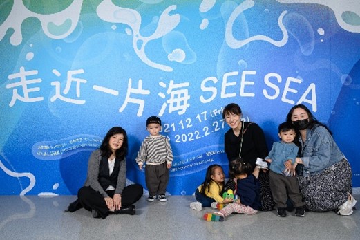 《走近一片海》特展邀請跨國際的六組藝術家,包含法國SUPERBIEN團隊、日本毛利悠子、以及來自臺灣的李家祥與李葳靜、邱杰森與莫珊嵐、胡縉祥與蔡秉樺、蔡宛璇,以沉浸式海洋劇場、裝置藝術、錄像、新媒體等媒介,以及延伸設計的互動體驗區,觸發兒童對海的漫「游」異想與多方探索。