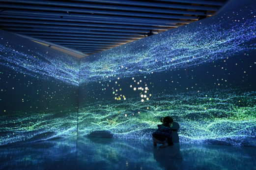 法國SUPERBIEN團隊打造「海洋奧德賽沉浸劇場」,並與海洋物種互動。(圖/桃園市立美術館提供)