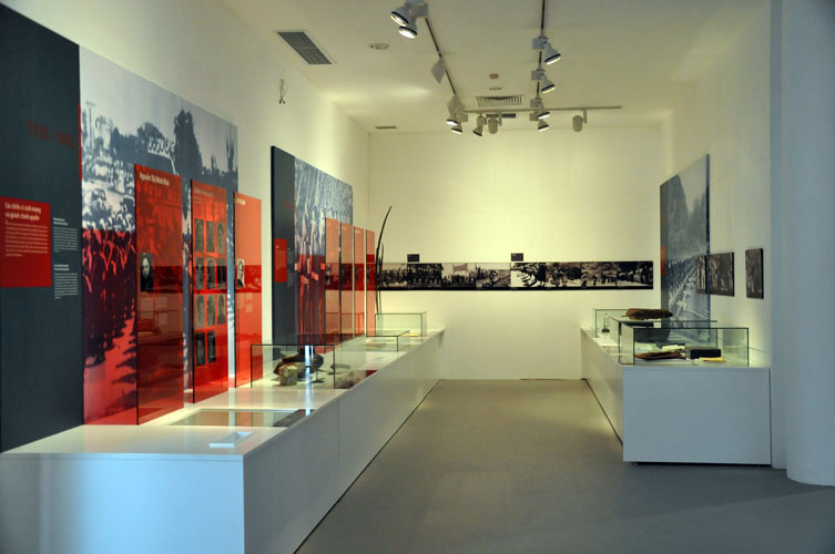 與上下兩層的展區相比,「歷史中的女性」展區的展示方式顯得多元而生動。此展區透過展示各個少數民族婆婆們的照片、婦女指揮游擊隊、操作軍事設備的照片,以越南文、法文與英文撰寫關於法越戰爭(1946)、越南戰爭(1964)的導覽文字,以影音互動、口述記錄播映和刊登等方式,呈現這些女性們對於離家難歸/未歸的父親、兒子、丈夫的思念、獨自照顧家庭的辛酸,以及她們的戰爭記憶。這些展示物一遍一遍地帶著參觀者回到了越南近代史的時光隧道,建構起在過去那段漫長的戰亂長河中,越南人民反覆爭取自主權、興起國家意識,甚至是為了獨立與他國交涉的過程。而這批「歷史中的越南女性」就在這樣的長河中,透過閱讀、實際走往前線、或支援家中的革命者,甚至成為越戰母親,化身為支撐國家最後一道,最柔軟,但也最堅強的防線。