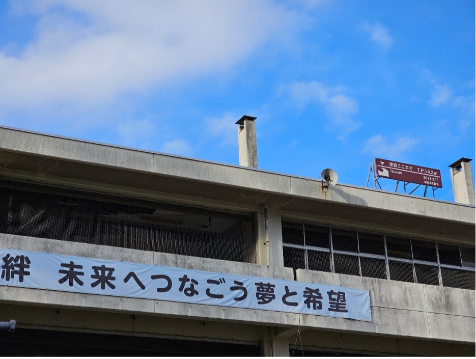 氣仙沼市位於日本宮城縣東北端,臨三陸海岸。東日本大震災造成氣仙沼市1,200多人死亡,15,000餘棟房屋受損,至今210多人仍下落不明(註2)。2019年3月,「氣仙沼市東日本大震災遺址與傳承館」開館,該館部分建築為歷經東日本大震災的「向洋高中」遺構,館長芳賀一郎則是該校的退休教師。向洋高中緊鄰海濱,地震當時校園內約有250名學生、教師和工作人員,由於靈活且迅速的疏散,沒有任何一人在震災中喪生,如此成功的防災經驗吸引了各地的教育旅行團和參觀者前來取經。「傳承館」作為震災的「視覺證據」,持續提醒世人天災的可怖,也傳承地震記憶與防災意識,期待將氣仙沼市打造成為「海嘯零死亡率城市」。
