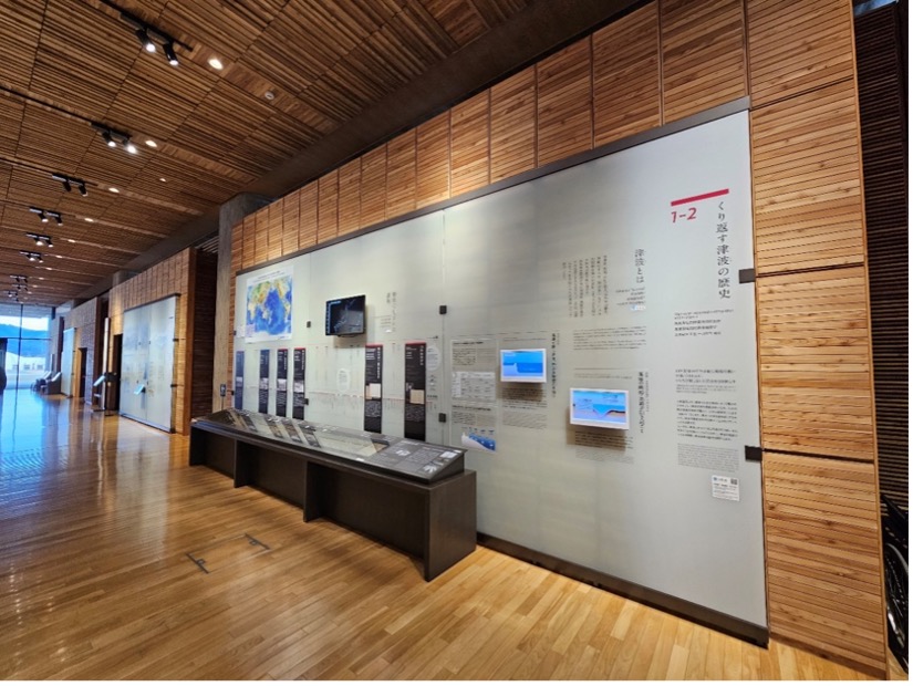 展示分為「探究歷史」、「了解事實」、「學取教訓」、「共同推進復興」四個展區,以及播放岩手縣的東日本大震災紀錄影像的「導覽劇場」。「探究歷史」展區以歷史與科學的視角,說明海嘯的成因、速度與破壞力,並呈現日本史上的重大地震與海嘯事件,反思如何與自然共存。「了解事實」展區則聚焦於「東日本大震災」,展示受災害侵襲的照片與實物,以及受災戶的心聲紀錄。