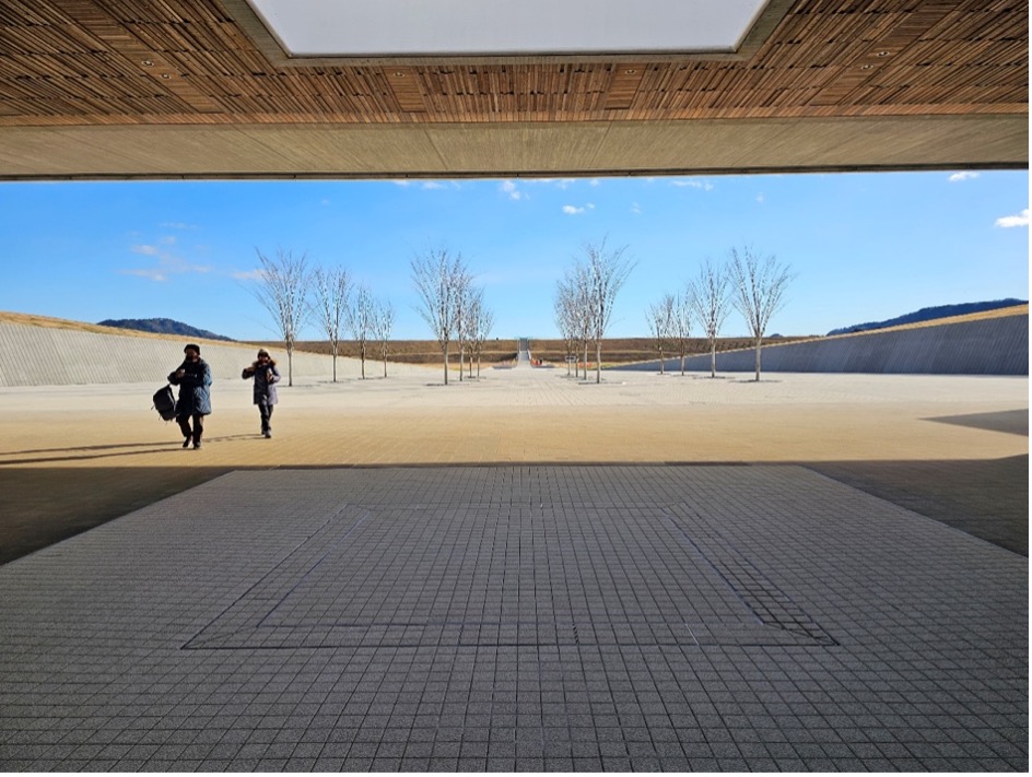 紀念館以室內展示「呈現過去」,室外廣場則轉換成「追悼、紀念過去」的場域,再移步至「現在」復育中的防潮林,隨著展示、環境與場景的變換,觀眾的參觀經驗在空間上逐漸海闊天空、在時間軸上則逐步邁向未來。