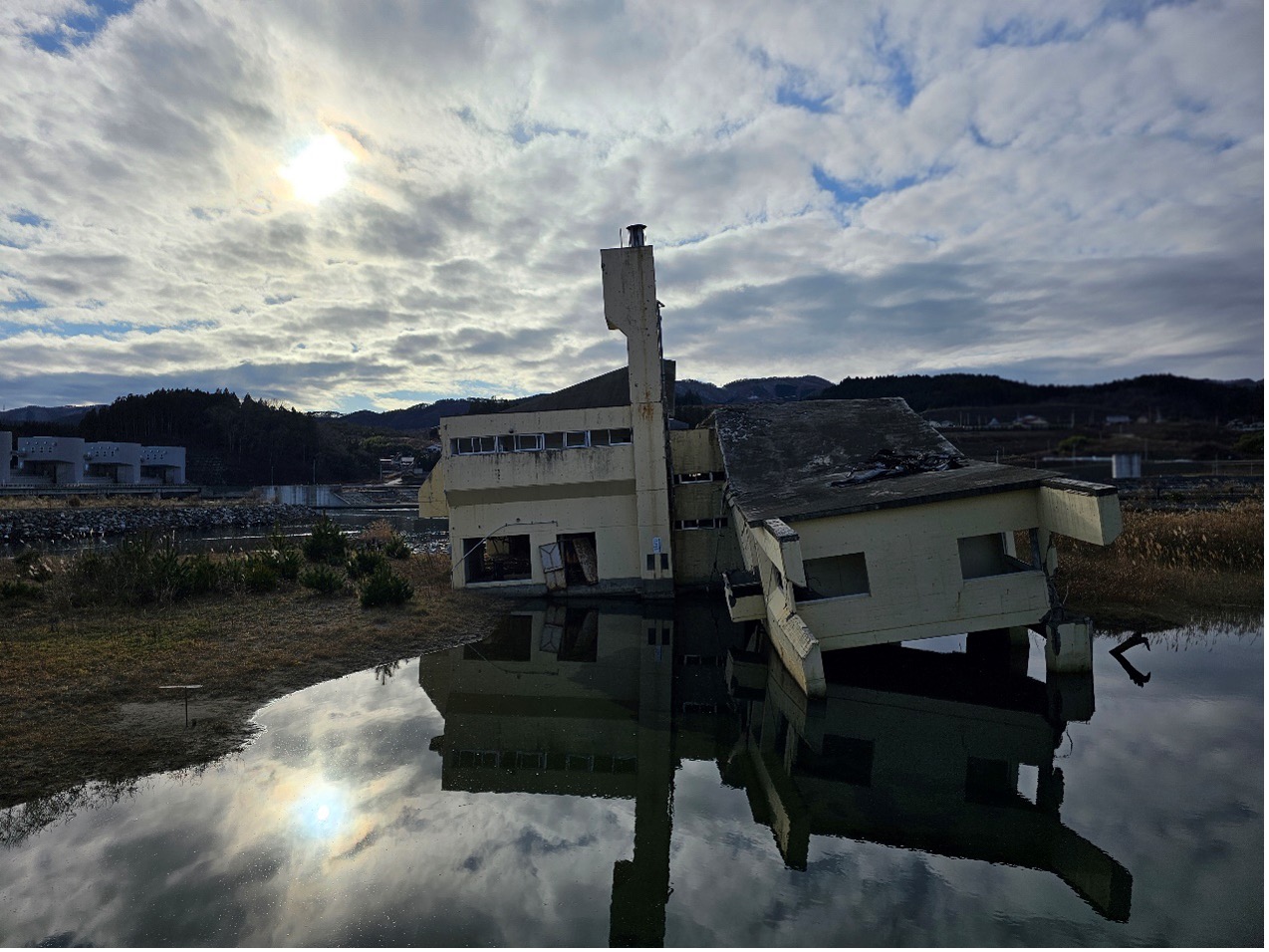 氣仙沼市位於日本宮城縣東北端,臨三陸海岸。東日本大震災造成氣仙沼市1,200多人死亡,15,000餘棟房屋受損,至今210多人仍下落不明(註2)。2019年3月,「氣仙沼市東日本大震災遺址與傳承館」開館,該館部分建築為歷經東日本大震災的「向洋高中」遺構,館長芳賀一郎則是該校的退休教師。向洋高中緊鄰海濱,地震當時校園內約有250名學生、教師和工作人員,由於靈活且迅速的疏散,沒有任何一人在震災中喪生,如此成功的防災經驗吸引了各地的教育旅行團和參觀者前來取經。「傳承館」作為震災的「視覺證據」,持續提醒世人天災的可怖,也傳承地震記憶與防災意識,期待將氣仙沼市打造成為「海嘯零死亡率城市」。
