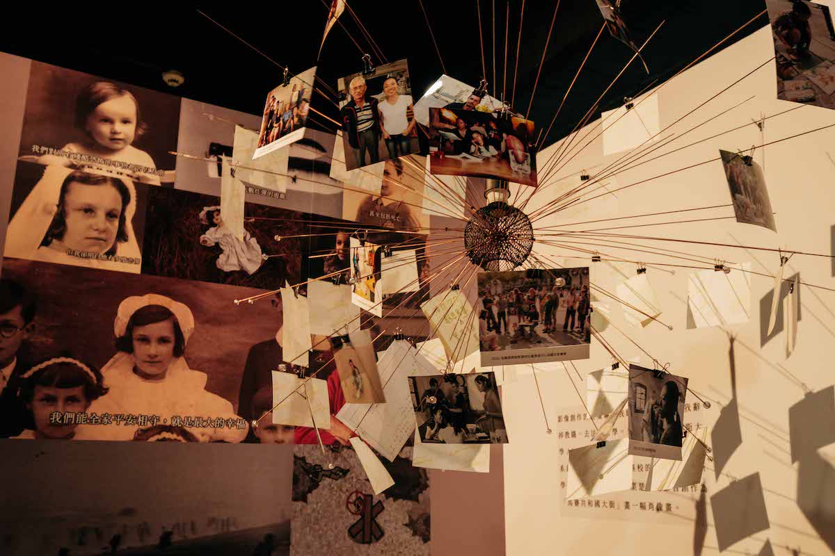 五樓展出《給阿嬤的一封信》。這部紀錄片源自導演陳慧齡對家族長輩的訪談,進一步演變成教學計畫,引導學生探尋各自家族遺落的故事,由此拼湊出時代的容顏。「群像」是此展間最鮮明的意象,展間前半部介紹導演的創作契機,可見由多張人物相片組合而成的立體裝置,如同一個個小視窗放射而出,兩側的展板則將多個肖像並列呈現,呼應導演對不同人物故事的興趣。