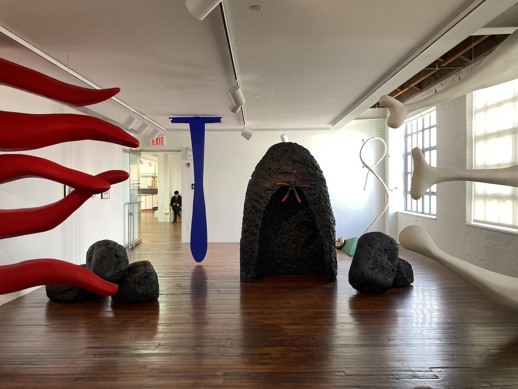 二樓鋪設木地板的展間,展出特展《子空間》(Subscapes)(註釋1),由館內資深策展人Dekin Hart策畫,探討意識與知覺之外的維度,引導觀眾想像人們無法看見的空間。他以野口勇與家具品牌Herman Miller合作的野口勇咖啡桌為例,將一片玻璃放在不規則的木頭椅腳上,就切割出不同的維度,Hart特別將咖啡桌架高展示,讓觀眾看到玻璃桌面之下的世界。