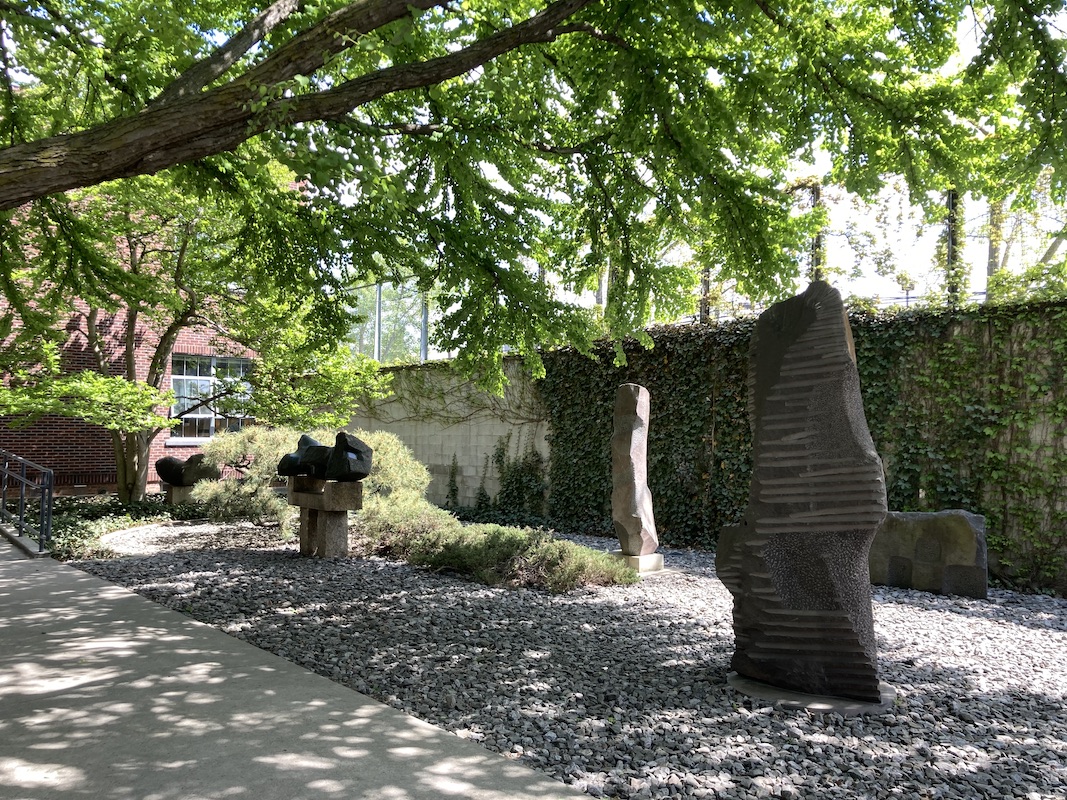 2023年4月筆者前往紐約時,終於有機會一訪野口勇博物館。彼時紐約初春,乍暖還寒,位於皇后區的野口勇博物館鄰近長島的住宅區,低調而不張揚,平日裡仍有不少外國旅客與青少年學生團。一樓的常設展,包含室內展間與花園。半戶外挑高的展間砌以水泥地板與水泥磚,主要展出1980年代的大型花崗岩與玄武岩雕塑作品,但樑柱之間透入日光,緩解空間的冷調氛圍。接著步入戶外,和洋混合的花園既有日式庭園常見的小碎石,也滿佈恣意生長的爬藤植物,禪意與現代主義在野口勇的雕塑與庭園內和諧共融。