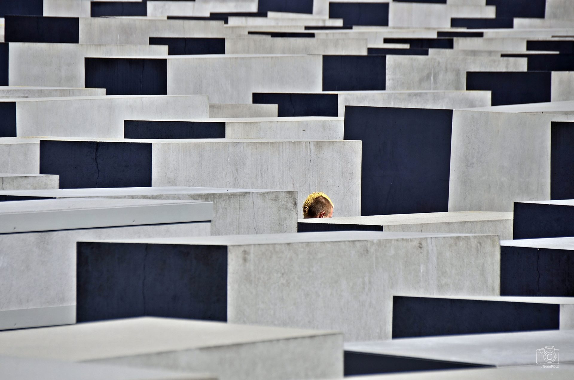 柏林猶太人紀念碑。兩個足球場大的區域豎立著綿延不絕的石碑,石碑設計為可平視的高度,時刻提醒遊客屠殺造成的巨大傷害(來源:Photo by Jennifer Stahn is licensed under CC BY-NC 2.0)