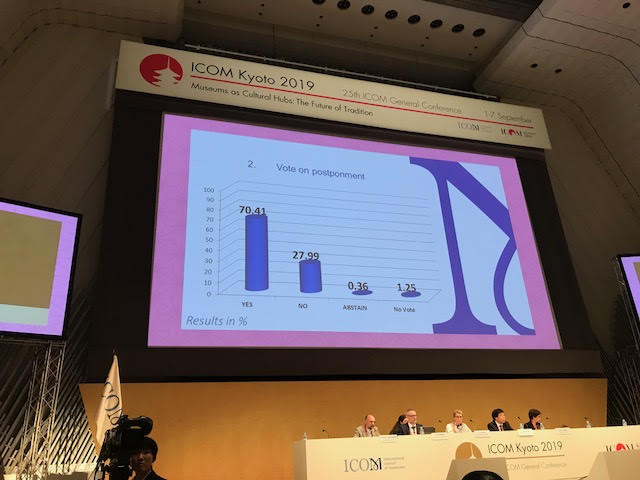 2019年的大會主辦國日本對新定義表達的立場,維持一貫的低調,與原來博物館傳統定義差距不大。日方對於新定義抱持保留的態度,或許是因為日、法兩國博物館模式有深厚的淵源,而且近9年來日本博物館界積極重返世界舞台,側重建立國際博物館網絡,目前為止並無表露鮮明的立場。中國這次所提的4個提案,除了一條指出博物館是種「社會現象」之外,其餘三條仍然是依循傳統定義,無大幅度更動。