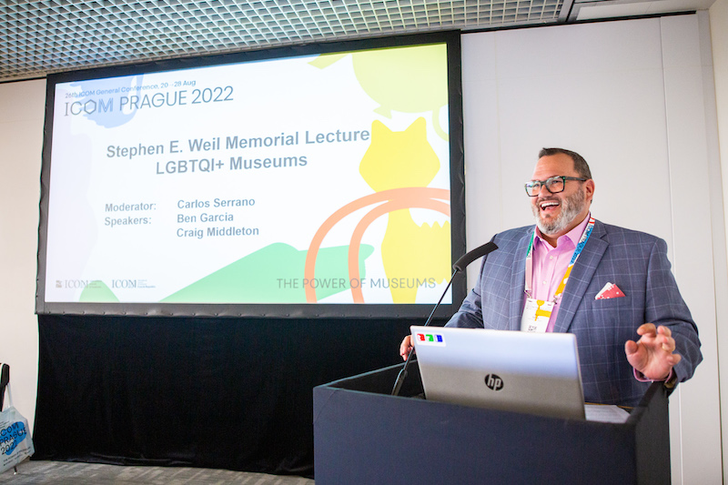 「要讓同志知道,自己是有歷史的!」今(2022)年ICOM布拉格大會史蒂芬威爾LGBTQI+博物館紀念講座(Stephen E. Weil Memorial Lecture – LGBTQI+Museums)中,美國LGBTQ+博物館(The American LGBTQ+ Museum)執行董事Ben Garcia與澳洲國家博物館(National Museum of Australia)研究員Craig Middleton聯手呼籲博物館應積極記錄、訴說同志歷史,並蒐藏關於多元性別的藏品——尤其針對正面臨遺失危機的當代同志蒐藏,畢竟「沒有典藏,就缺乏說故事的資本」。