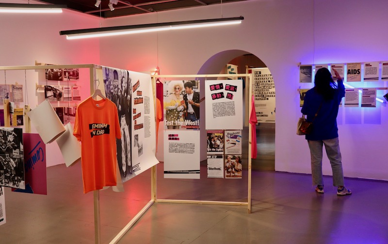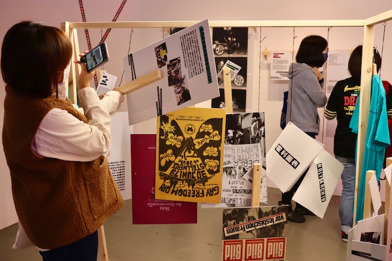 有趣的是,展場設計均呼應酷兒無畏奮鬥的脈絡,呈現了一種「活動式」的互動特色。例如藉由抗議遊行常見的木製舉牌、輕便木衣架、垂掛的資訊手冊、可靈活拆卸的金屬掛鉤展板等,促使觀眾自主翻閱和交換討論。