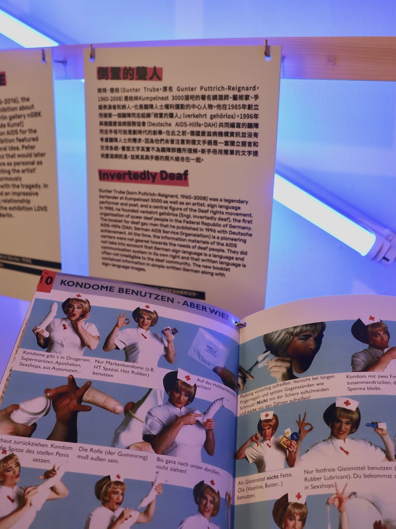 1980年代初期,愛滋病於歐美國家爆發,面對親友的患病與死亡,以及反同性戀仇恨情緒,促使同志、自助組織與健康衛生部門合作,提升同志基礎設施,進而拓展身而為人的基本權利。由岡特・楚柏(Gunter Trube[註3])創立的西德第一個聽障同志組織「倒置的聾人」(Verkehrt gehörlose),1996年編寫了劃時代聽障同志手冊,以簡單文字結合德國手語照片,講解如何正確使用保險套並提供愛滋病資訊,幫助聽障同志維護自身與他人的安全。而專門報導性工作者日常與工作生活的《夜間快報—一份給酒吧、妓院和街妓的報紙》,則代表自1980年抵抗性工作歧視污名的權益之戰。